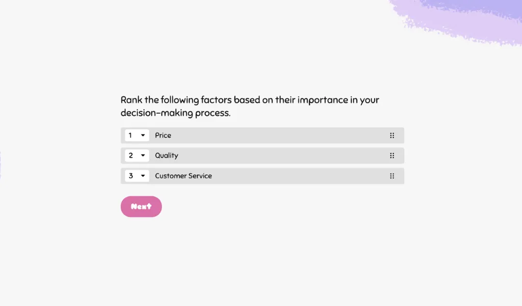 Keep your survey short and to the point to increase the chances of survey completion. Focus on the most important question types that provide actionable insights. Ideally, the survey should take no more than 5 minutes to complete. Avoid overwhelming respondents with too many questions or overly complex queries; instead, prioritize clarity and relevance to maintain engagement.