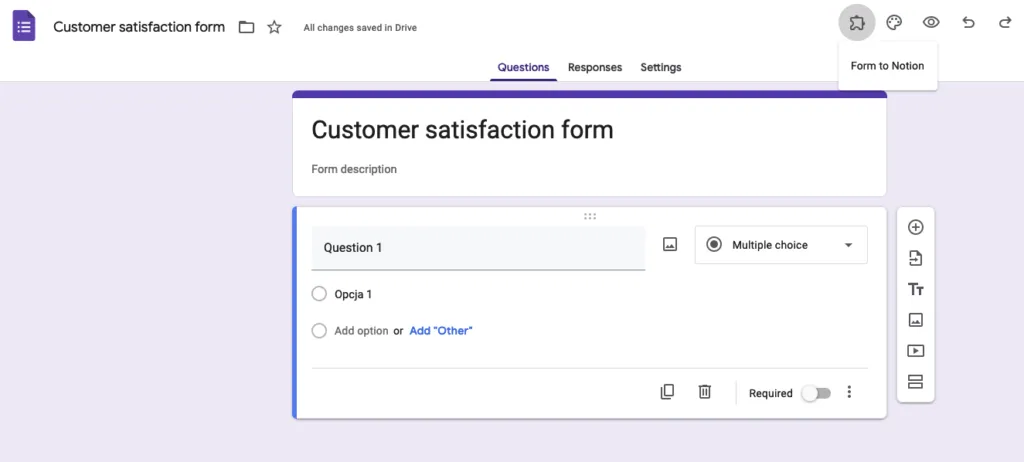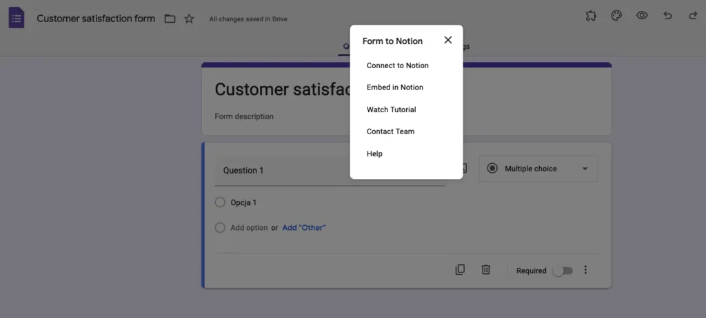 You must install a third-party integration to integrate Google Forms with Notion. One such integration is the “Forms by Notion” tool. Here’s how to set it up: