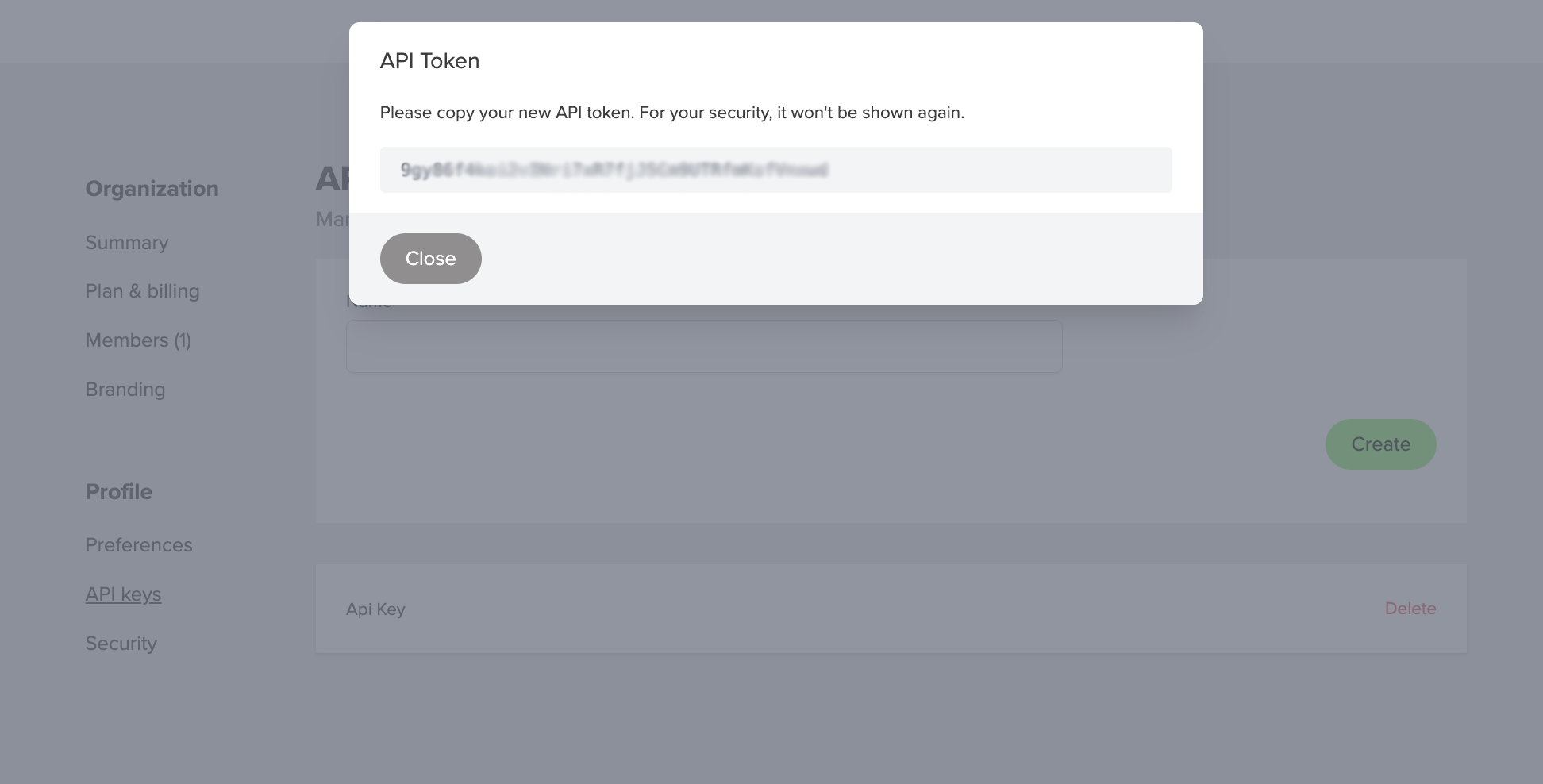 zapier) and click Create. - Copy the generated API key — it’s unique to your account and you’ll need it to connect Zapier.