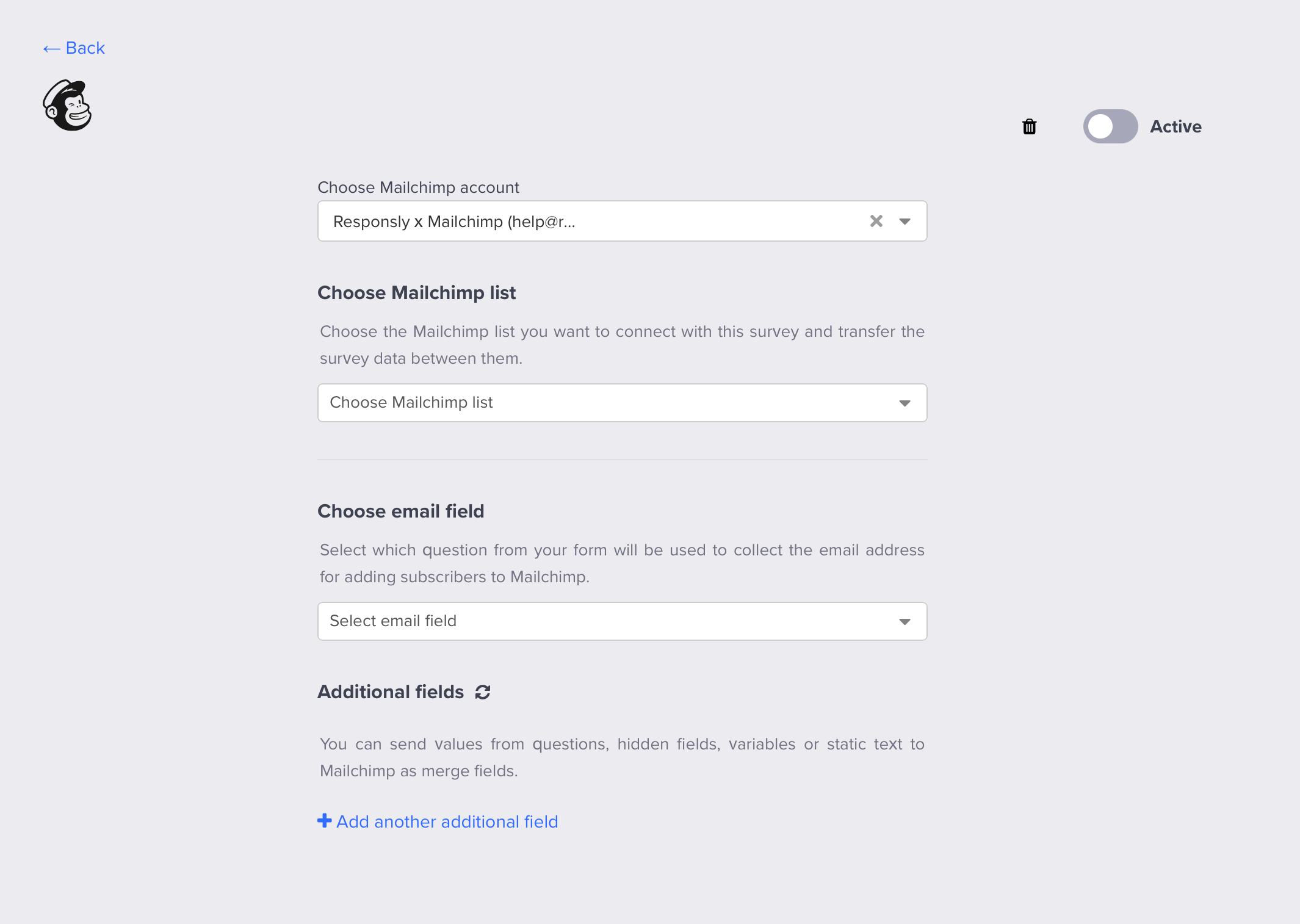 In this guide, you will learn how to integrate Responsly with Mailchimp. Save survey answers as tags, notes, or list fields on subscribers’ profiles.